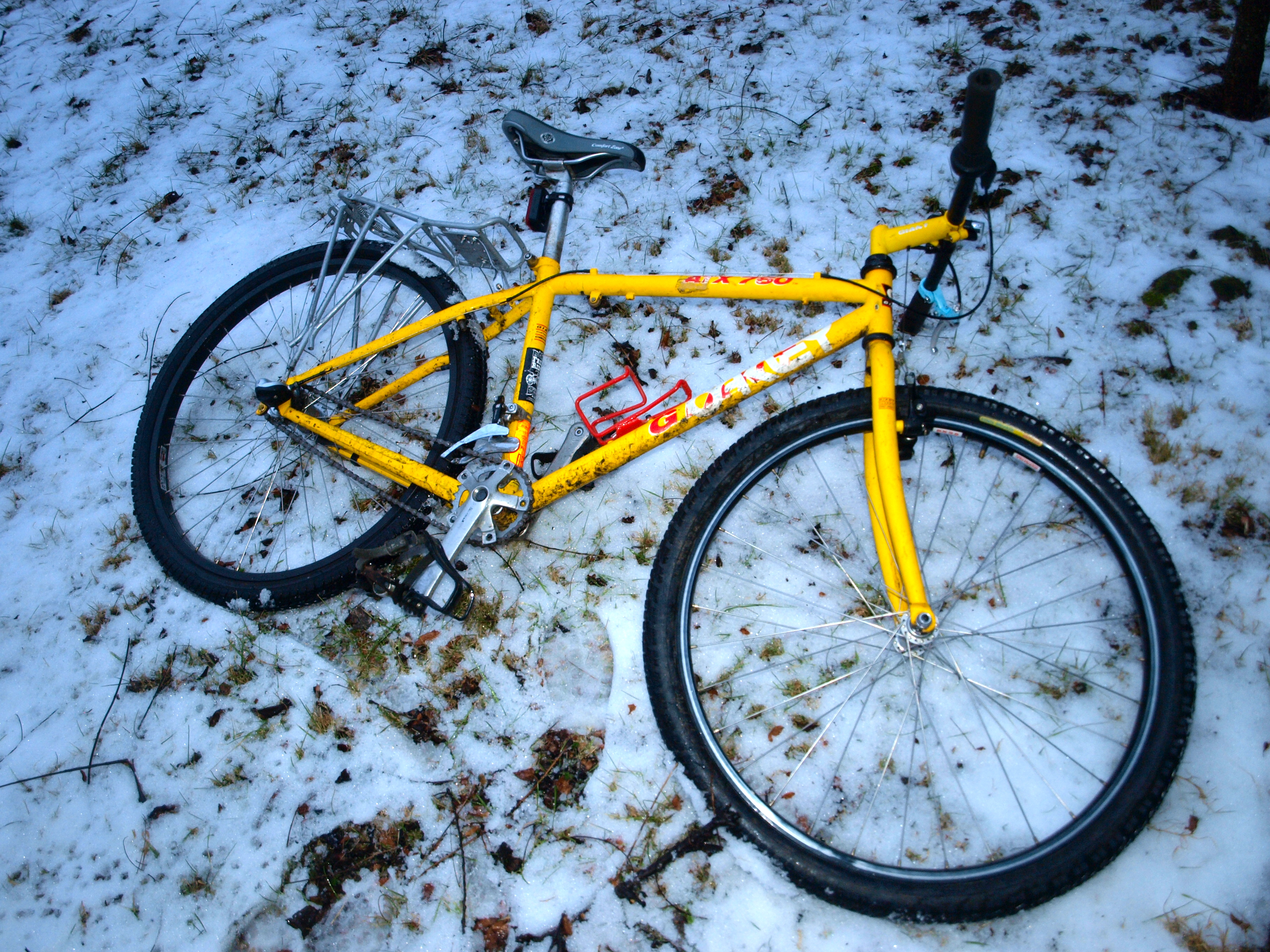 I recently put together a new winter bike. This is probably my last new Free Ride bike for a while. It is lovely. It is a tiny yellow mountain frame and I threw on a three speed coaster wheel that had been hanging for quite some time, which it is tolerating just fine. I took a while to find the right chainring, but I am very happy with the gearing. I had to buy a new chain and push rod, this is ok. I took a day getting used to the coaster brake but I’m quite appreciating it now. Riding other bikes feels weird already. I’ll have to get used to hand brakes again in the spring, I guess.