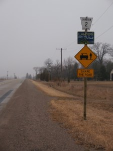 My first day was all familiar territory. In fact I left with no directions, figuring I’d enough idea of where I was going to get into Toronto… That said, I was pleased with myself for actually remembering all the turns to get up around Moraine where I got on 19. Second day had rain, and there was an increasing amount of snow on the ground as I went north. I got into Erie and happened to be right near Leo’s place when I thought to check warm showers for a place to stay that night. I called and he welcomed me over. Spent the evening with him and Bonnie and his dog Buddy. Leo has done a bit of touring and had some solid advice.