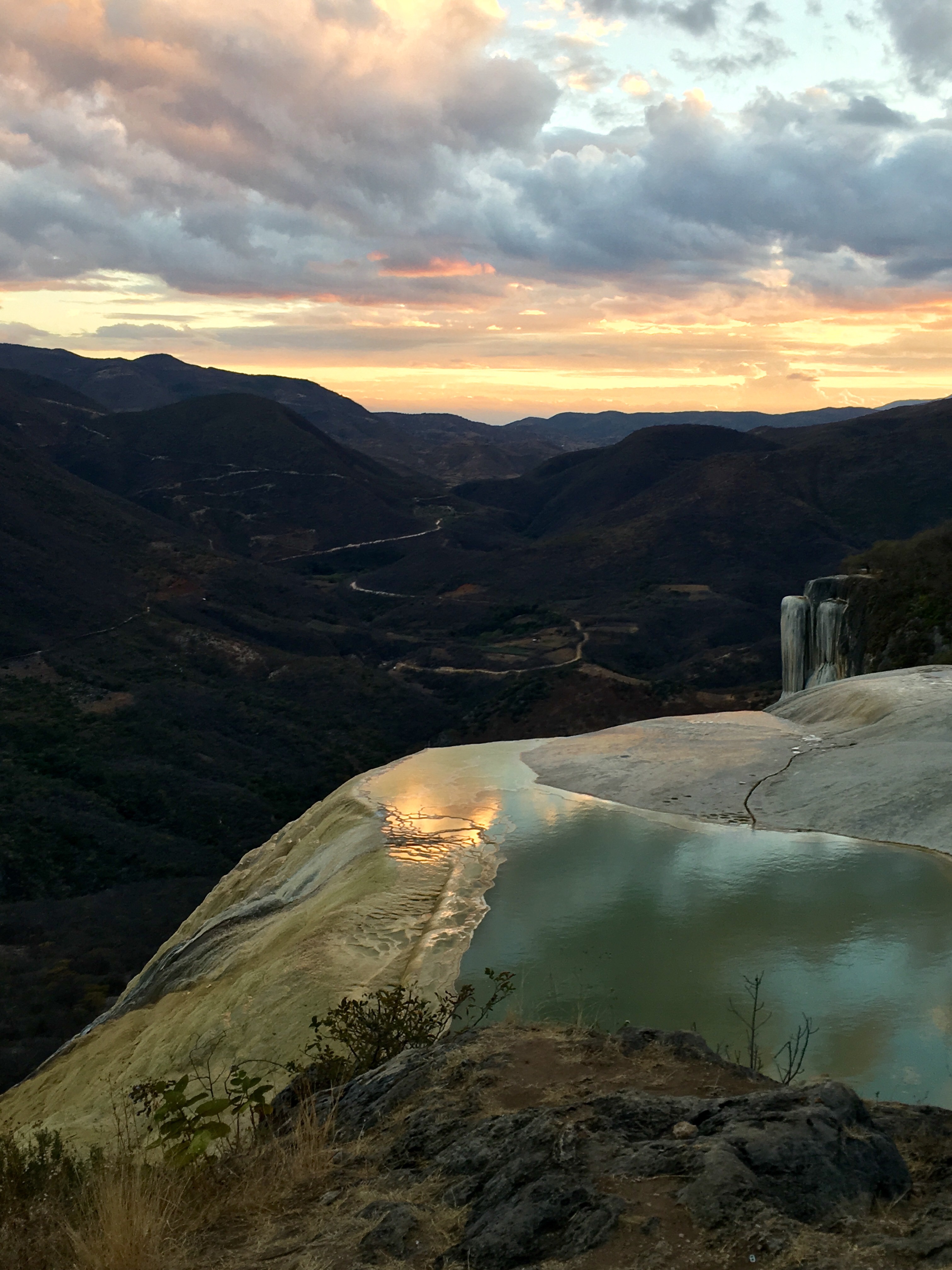 Hierve El Agua is a site of petrified waterfalls, mineralful springs, generally lovely spot to visit in the mountains