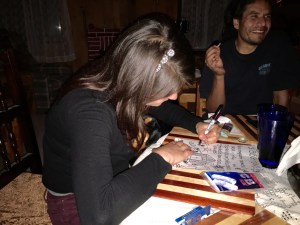 A couple of Argentinian campamentistas, and the kitchen on the right. Beyond the fence straight ahead is a road, where you can watch people passing. Off to the left is a river, where people often come to wash clothes, bathe, or play, and beyond that is the school and clinic and women’s cooperative.