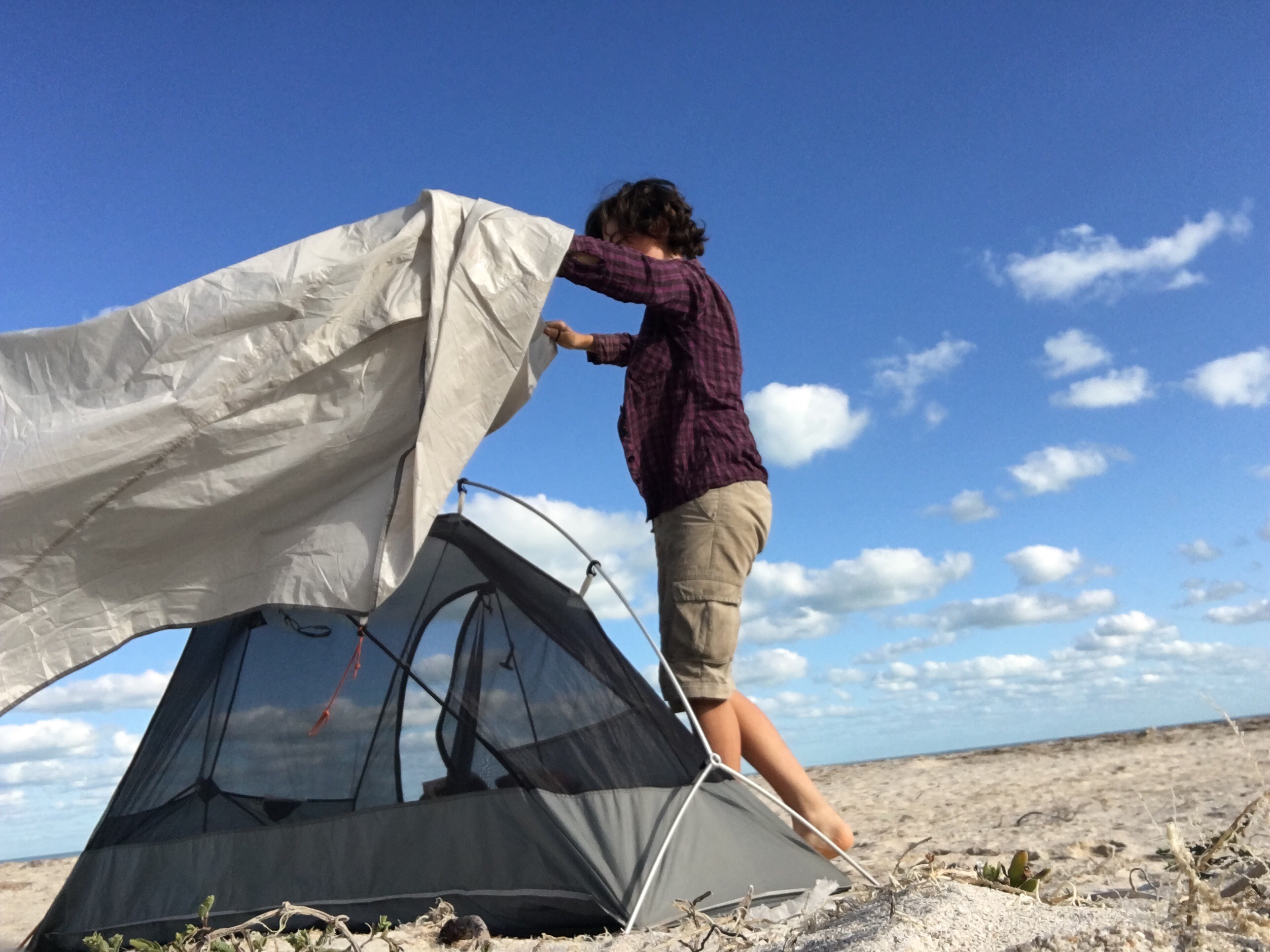 I think this was my first time camping on the beach. Is that possible? I know I have camped very close to many in the past. Perhaps part of the romance is the difficulty of setting up a tent in the wind and trying to keep (most of) the sand out.